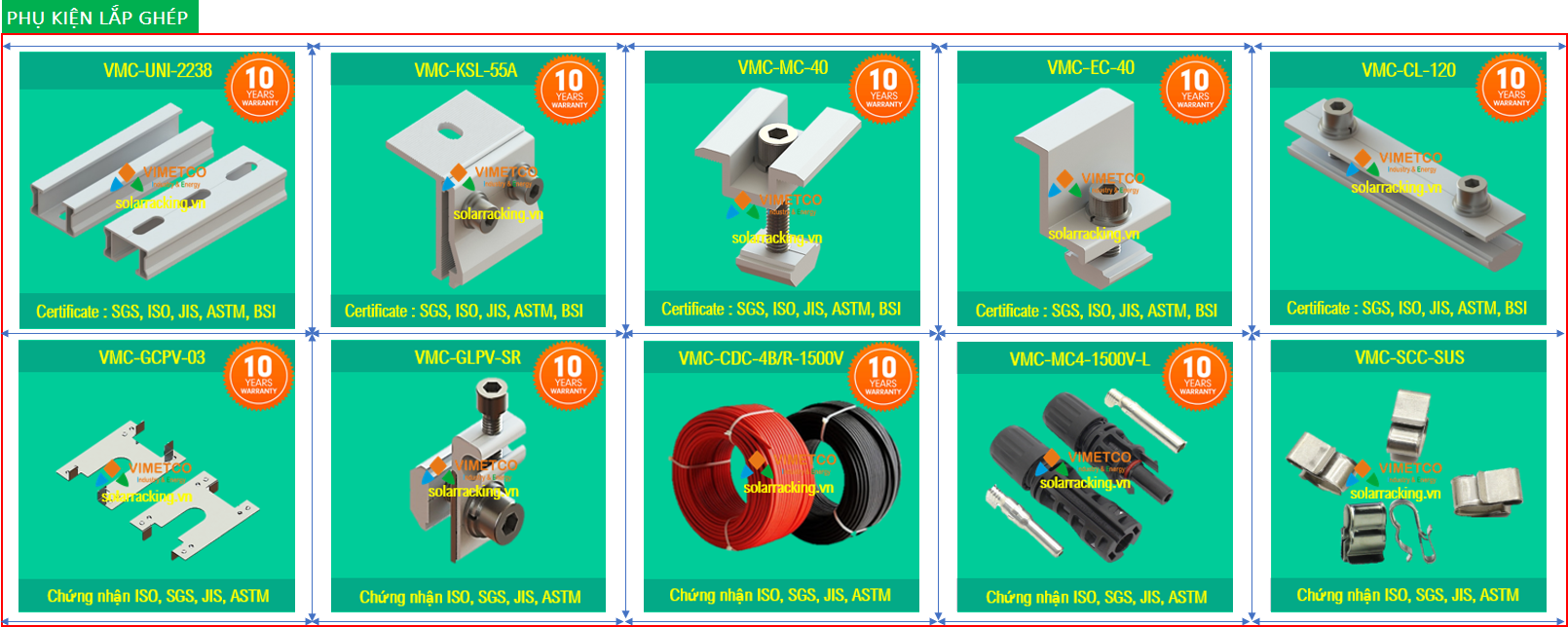 - Phụ kiện chuyên dụng do Vimetco SX: Seamlock 55, Kẹp MC-40,EC-40,GLPV-SR...