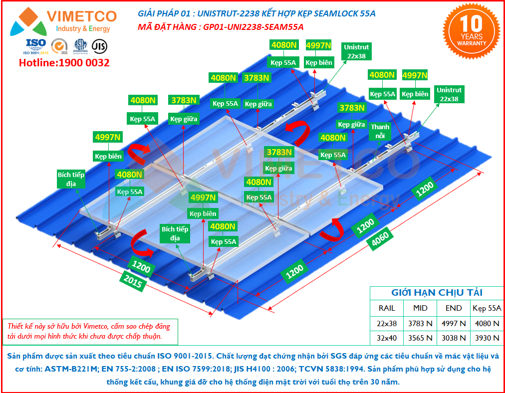 GIẢI PHÁP 01 : UNISTRUT-2238 KẾT HỢP KẸP SEAMLOCK 55A